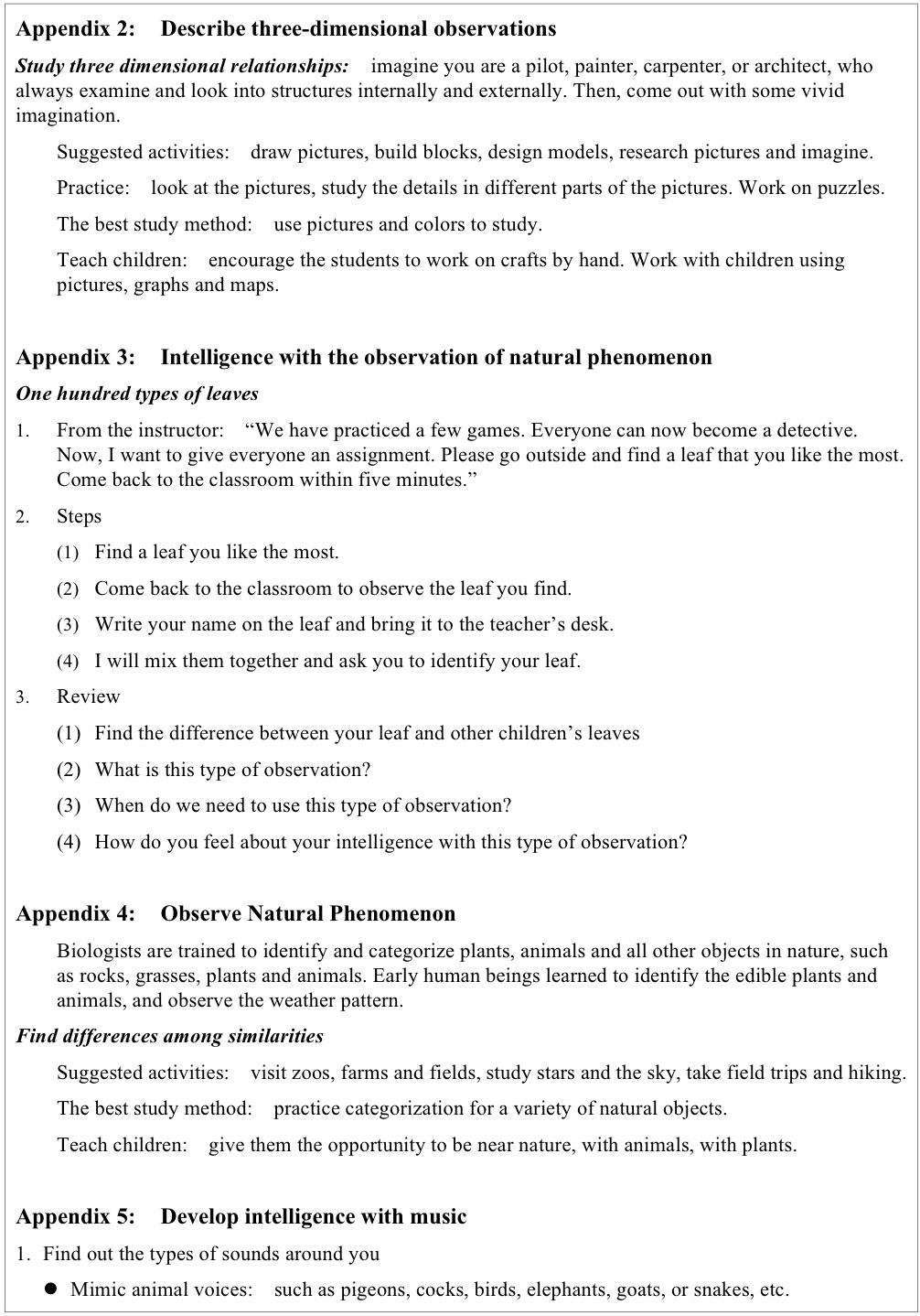 Once the sessions are decided by the team of instructors and camp leaders, the team will start to work on the details of each session. All class material and equipment are prepared ahead of time and the classes are rehearsed by the team members. Each class document includes an view of how each session is designed and implemented in detail. Displayed below is an example of class preparation material, designed by the instructors from the National Chengchi University (Taiwan), for one of the "intelligence development" sessions.